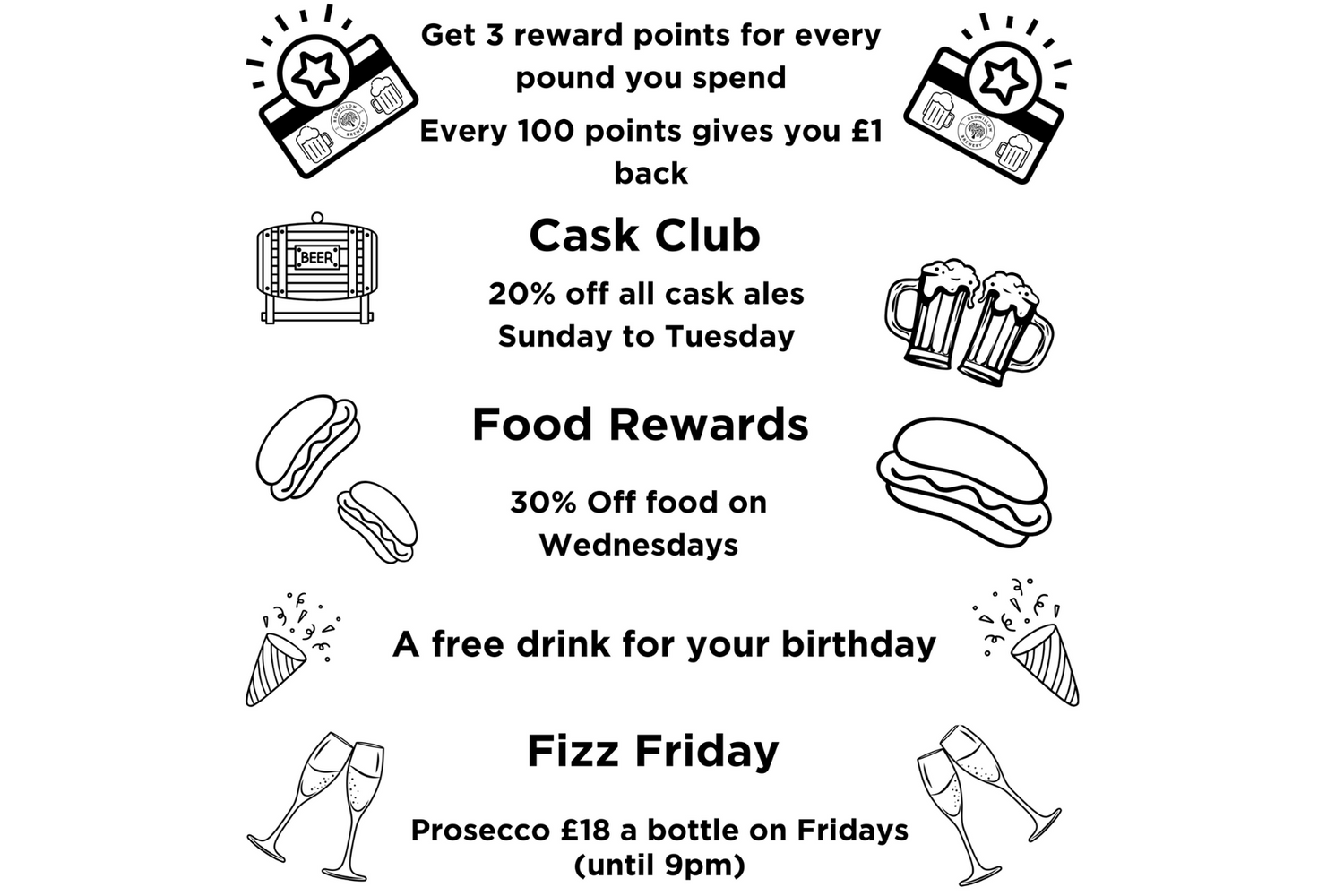 Sign up for our bars loyalty scheme and earn points in the bars for discounts and offers